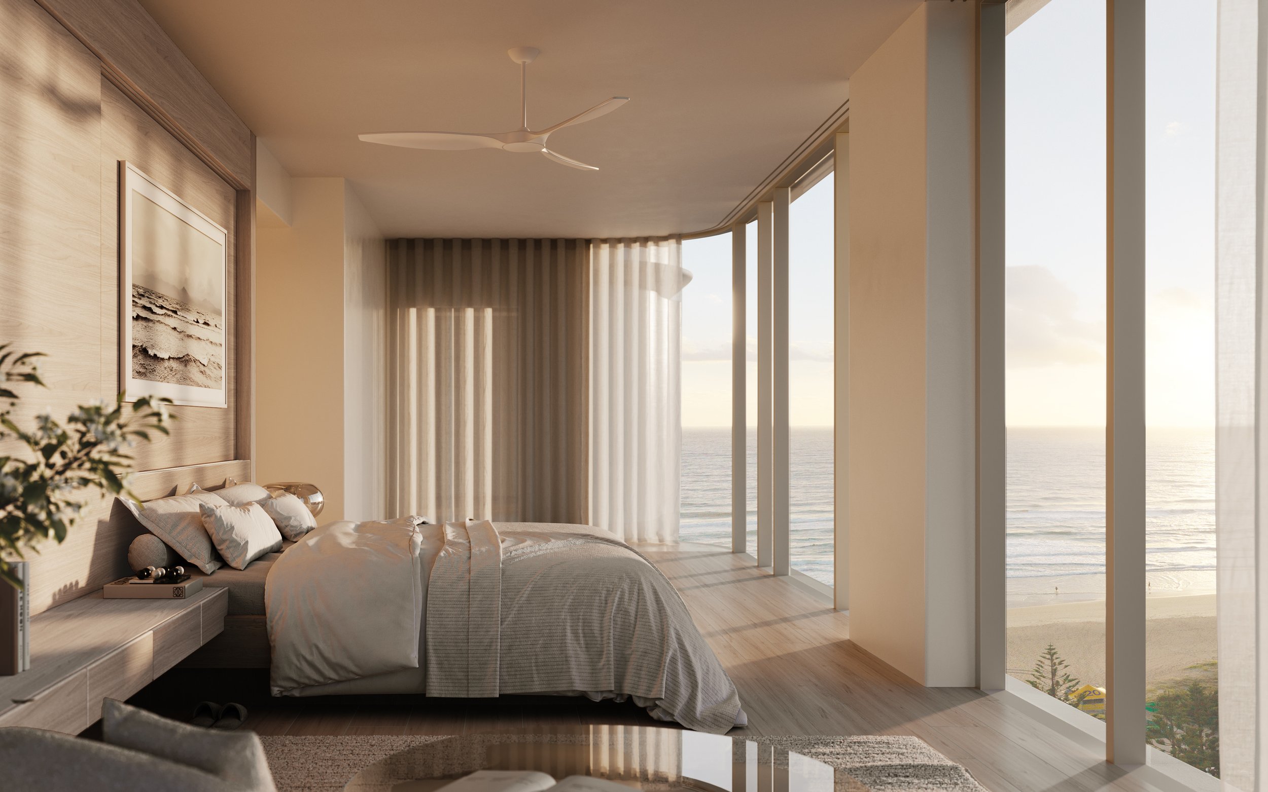 Inspired by the natural rhythm of the coastline, MYST brings architecture and interiors into perfect harmony, sculptural yet soft, refined yet grounded. The façade, with its organic curves, mirrors the sands and ocean beyond, creating a timeless presence on the North Burleigh shoreline.