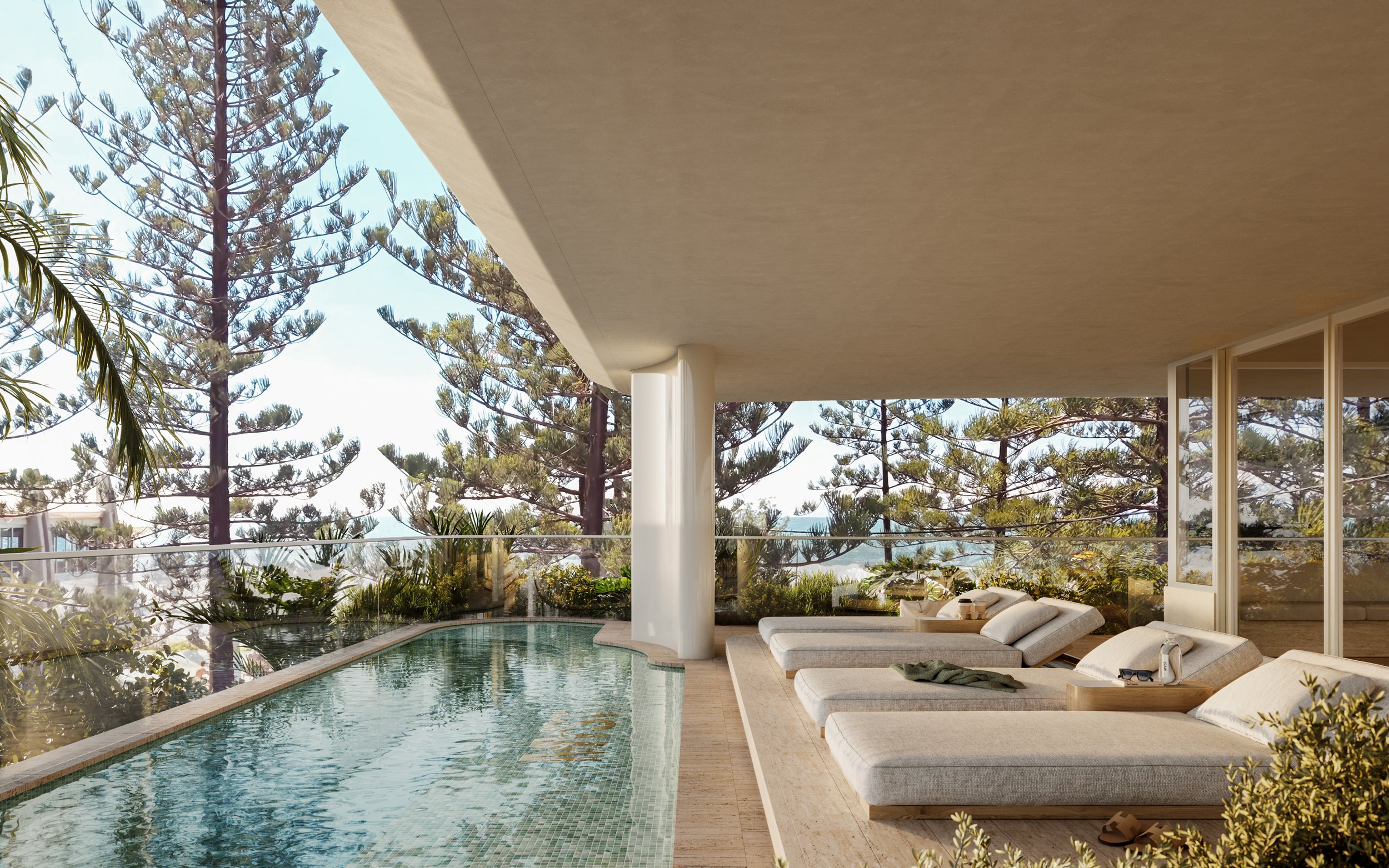 Inspired by the natural rhythm of the coastline, MYST brings architecture and interiors into perfect harmony – sculptural yet soft, refined yet grounded. The façade, with its organic curves, mirrors the sands and ocean beyond, creating a timeless presence on the North Burleigh shoreline.